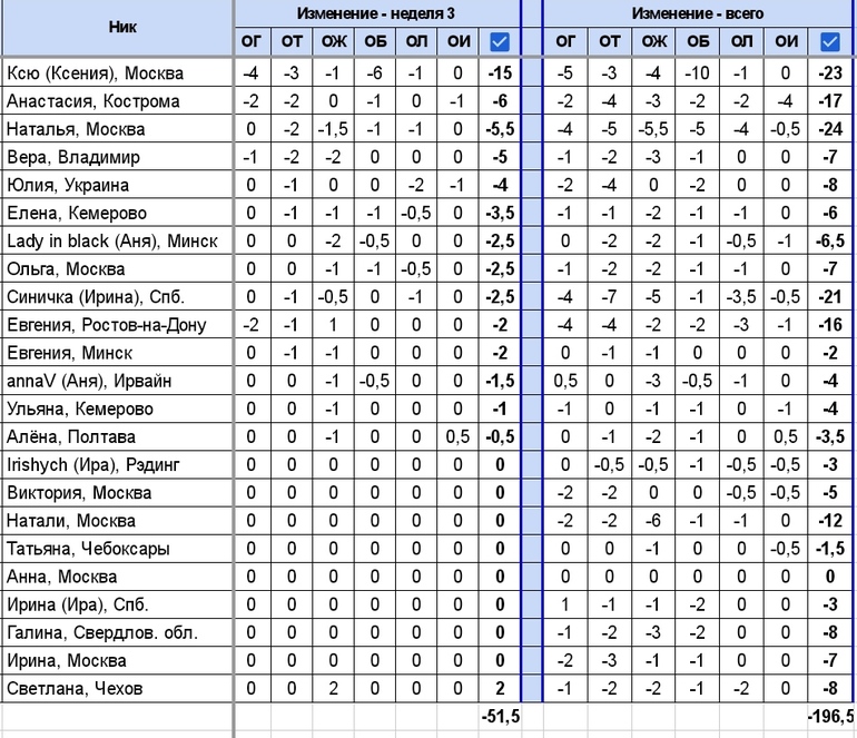 Безусловный лидер по объемам - Ксения, с каким-то просто невероятным результатом -15см! Поздравляю!