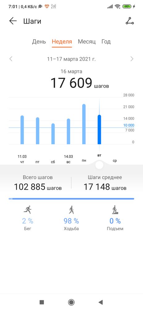 Привет! За сегодня, 15 марта. Зарядки не было, но находила 24 тысячи шагов или 16,7 км. Залезали на гору, занимались сендеризмом: