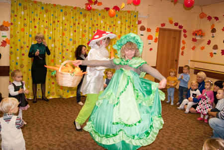 Куда пойти с ребенком? (Все о досуге с ребенком и семьей)Выпендрилась))). На самом деле это просто закрытый праздник от школы Развития Умница. Прогресс взросления на лицо, за мамой во время танца не гоняемся, танцевали в центре круга! незнакомые вещи принимаются с удовольствием, а с чаепития уходить не желали. На празднике деток познакомили с признаками осени(созравание плодов, частые дожди, обилие луж, яркиелитья+листопад), а в завершении все пели колыбельную медведю.