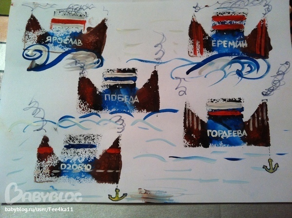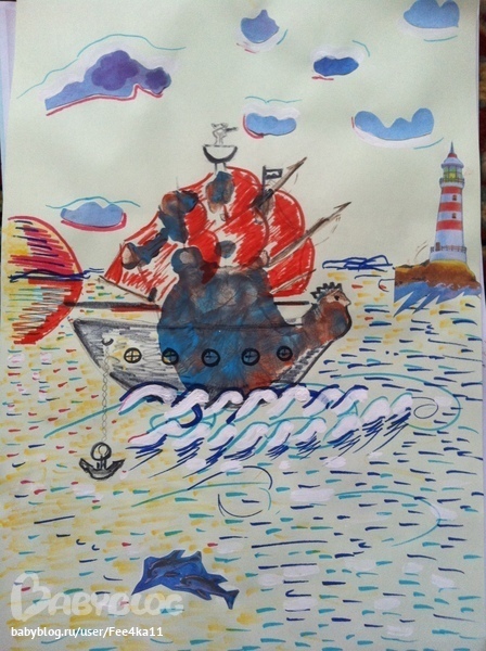 Рисовали, фломастерами: "Кораблик, попавший в жуткий шторм"