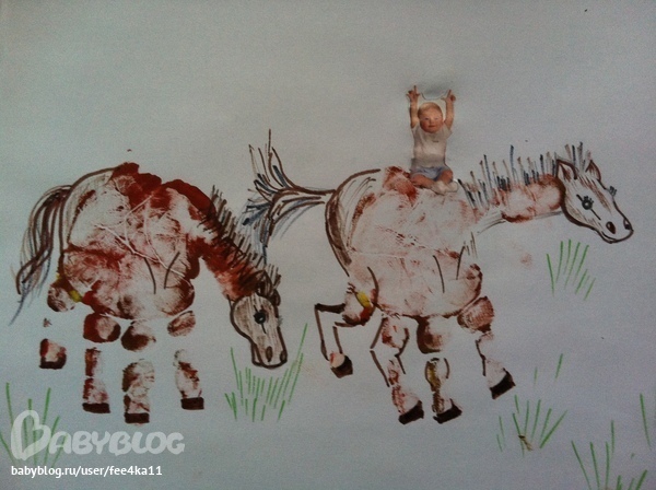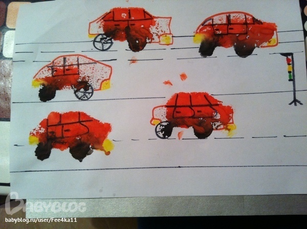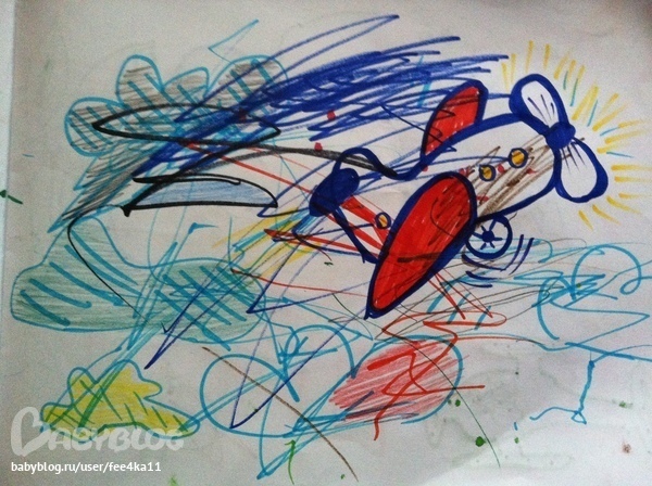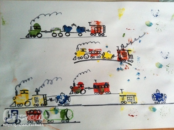 А потом рисовали красками, малыш тыкал пальчиками, я потом довершала фломастером