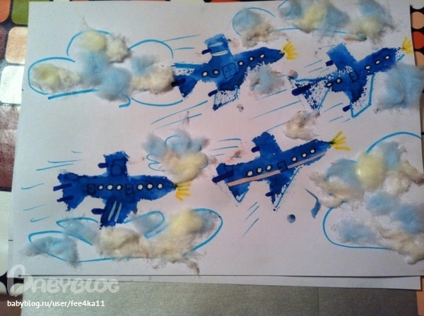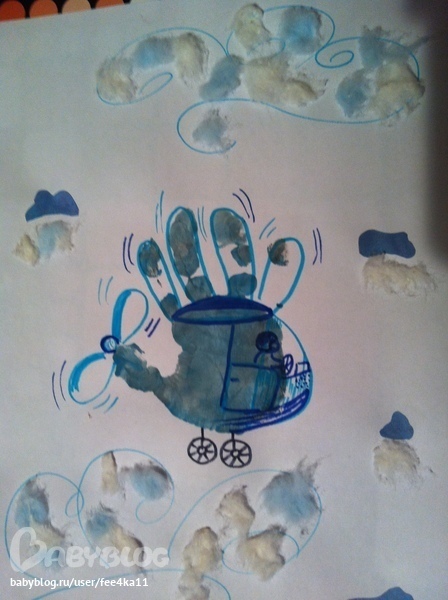 картинки из родных сыновьих ладошек)))) ну и облачка из ватки