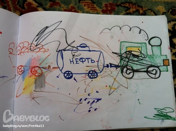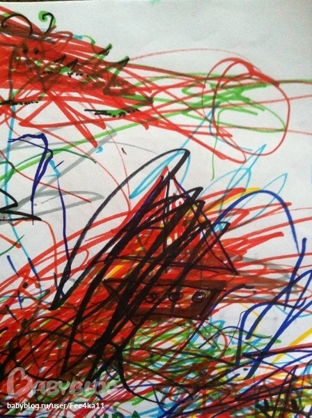 Ну и рисовали: сначала фломастерами с мамой (у нас это происходит так, ребенок открывает фломастер, изрисовывает себе руки и все что хочет, а потом берет мою руку и кладет на свою с фломастером и я вожу его рукой и мы рисуем)))) раскрашивает потом сам, если силы остаются))) или потом возвращается к неоконченному шедевру)