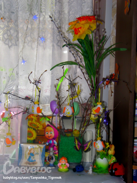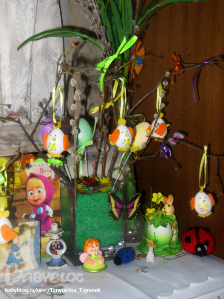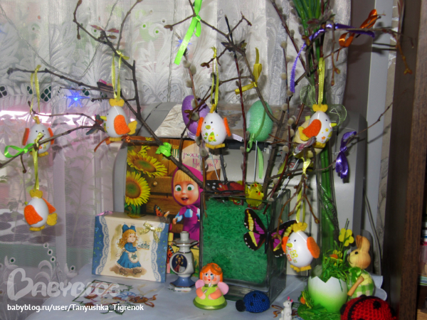 Праздник к нам пришел (Игры в День Рожденья, Новый год, 8 марта и.т.д.. А так же чем занять нескольЯ оченб люблю Пасху,наверно мой самый любимый праздник.. а сейчас я хочу немного и дочке рассказать про этот праздник! И по этому случаю мы сделали небольшой пасхальный уголок))) Настюшка много раз к нему подбегает и показывает пальчиком)) ну а теперь несколько фотографий) это еще не все, мы продолжаем готовиться))