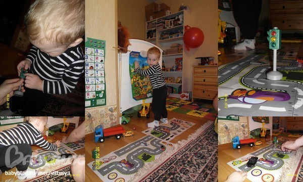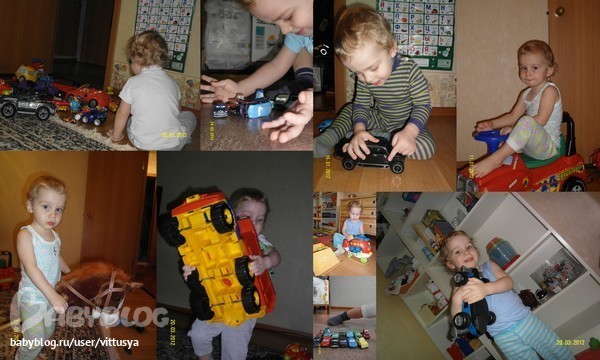 7. изучили марки и виды транспорта и теперь знаем БМВ, Газель, Автобус и Трамвай, Трактор и Аварийку, папину Мазду, мотоцикл, самокат,велосипед,коляску - всё покащывает пальчиком и называет (на своем правда, но я понимаю). а ещё запчасти машин выучили -показывает багажник, бампер, руль, дверь и крышк, мотор, капот, фары, поворотник и сигнал, колеса)