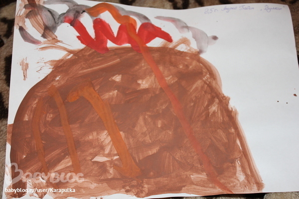 И "Вулкан". Даже с дымом и горячей лавой. Интересуется почему-то очень вулканами)) Картинки смотреть любит с их изображениями...