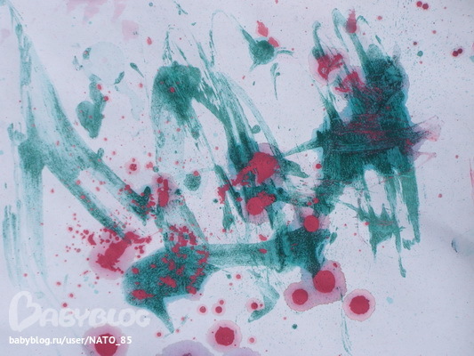 Лизе идея понравилось, но вот и исполнением у нас не совсем вышло... То ли пузыри не такие, то ли гуашь, то ли руки у меня такие... Но мне показалось что мы не достигли нормальной концентрации. Сначала краски было слишком мало, а при ее небольшом добавлении в тюбик становилось слишком много и пузыри не дулись((( Но не смотря ни на что мы здорово просели время!