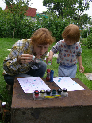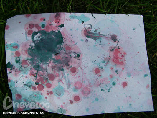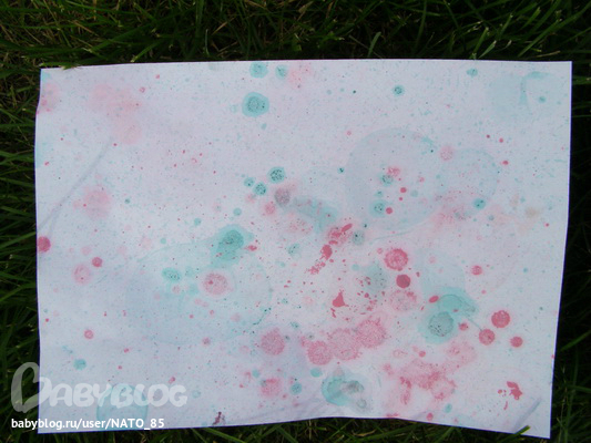 Художка ( красим, рисуем , придумываем новые способы рисовать)Отдыхая на даче и имея возможность эксперементировать с вариантами "грязного" рисования мы пробуем новые для нас методы! На сей раз мы выбрали мыльные пузыри и гуашь.