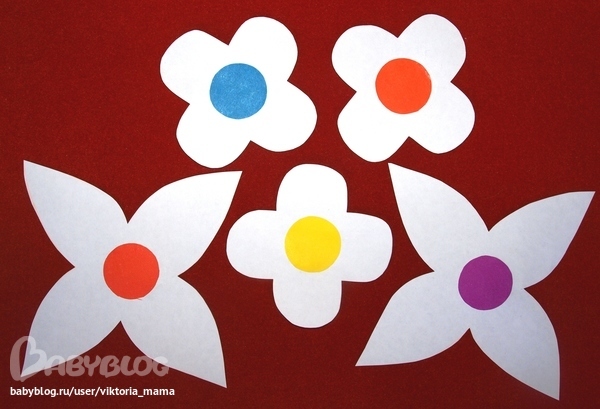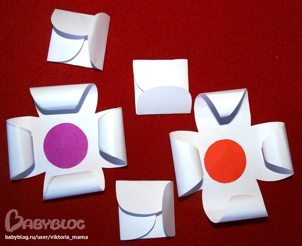 1. Необходимо вырезать из бумаги цветы с длинными и короткими лепестками.