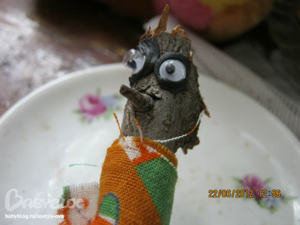Мистер Умелец или Очумелые ручки (поделки, аппликации, интересные находки, идеи и задумки)Обычные палочки с сучками вместо носа, к которым я прилепила глазки и одела в кусочки лоскутков - стали любимой игрушкой сына на несколько дней.Мне кажется,что такие незамысловатые игрушки хорошо стимулируют развитие воображения и фантазии.