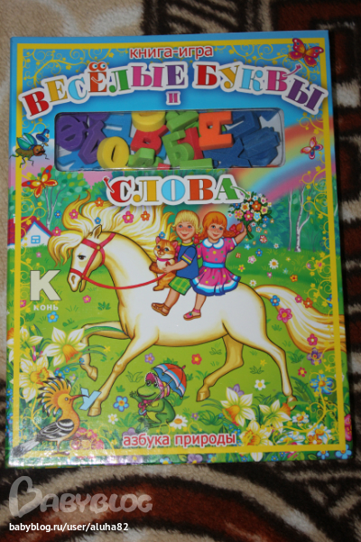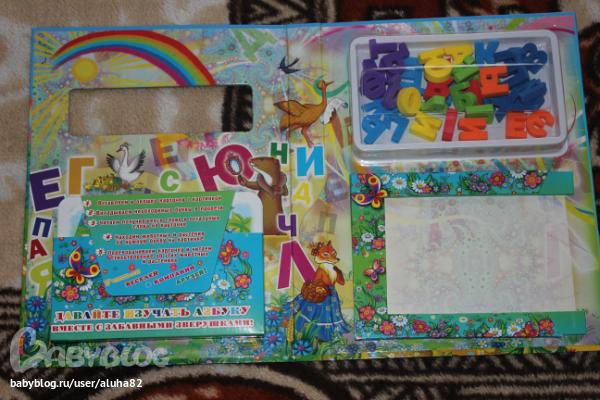 Вторая книга подходит для изучения алфавита. Книга тоже такая красочная, в твердом переплете (для нас это важно).
