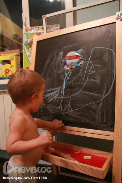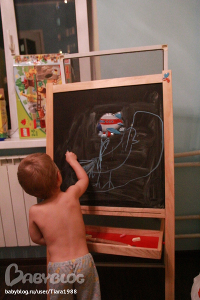 На мольберте рисуем каждый день, очень любит рисовать мелками! Мелки у нас из Икея! Рисуем на манке- дорожки от отдого муравья к другому!