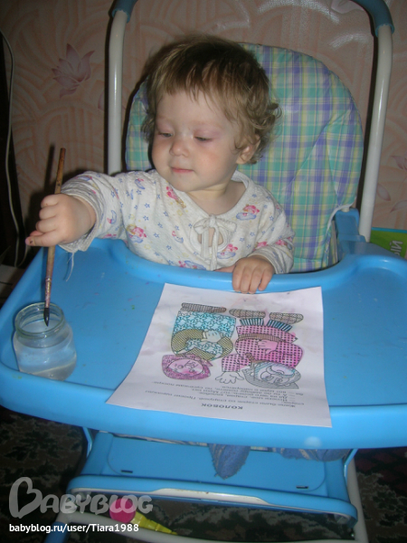 На этом фото Даньке еще нет года- разукрашивали водные раскраски по сказкам!