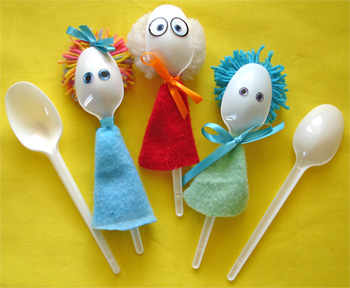 Пока мы делали своих кукол, пришла в голову интересная идея. Можно таким образом сделать сказку “Белоснежка и семь гномов”. Гномы в колпачках – это ложки, а Белоснежку сделать, например из половника.