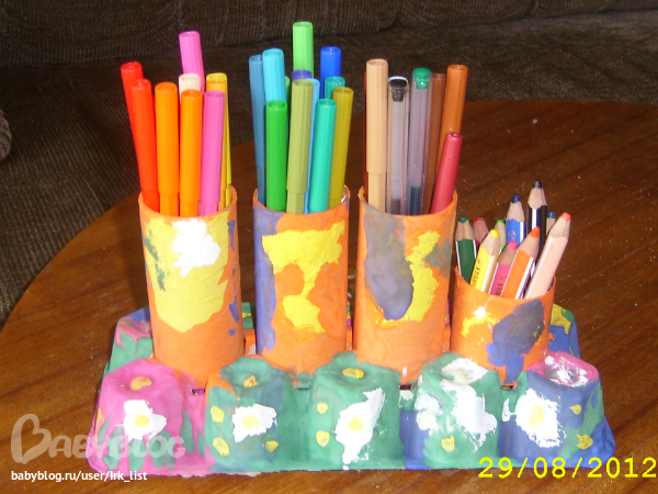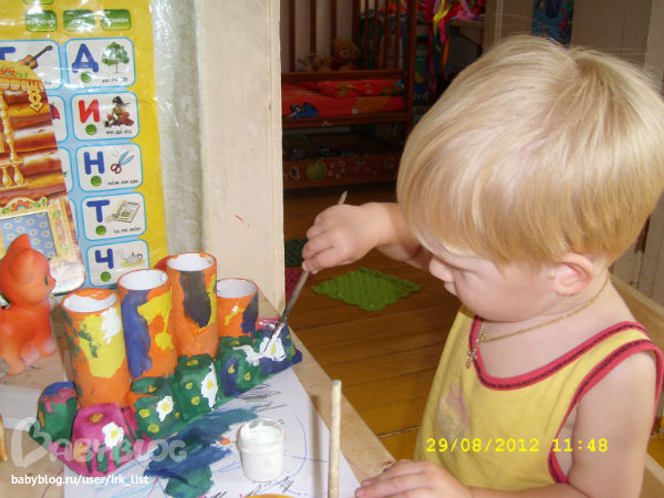 Мистер Умелец или Очумелые ручки (поделки, аппликации, интересные находки, идеи и задумки)Подсмотрела на ББ. Клеила сама, красили вместе с Герой. Понадобилась коробка от яйц и рулончики от т/б, клей.