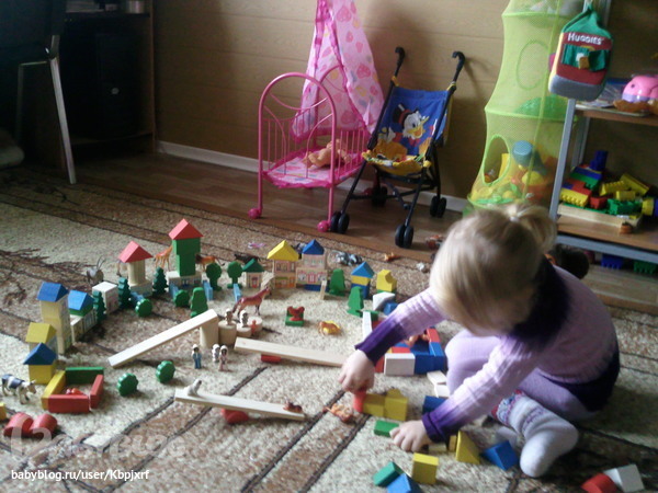 Развивающие игрушки (пазлы, вкладыши, конструкторы, мозаики)Была недавно в "Дружном мире" прикупила Лизульке вот такой наборчик кубиков ГОРОДОК фирмы томик. Деть в восторге, там есть маленькие фигурки людей :мама, папа и трое деток( хотя у нас очень много маленьких игрушек от киндеров -эти ей очень понравились), деревья, кустарники и разрисованные кубики с окошечками (кафе, школа, банк, магазины и т. д. ). Год назад мы покупали обычный набор этой фирмы из 65 деталей, очень довольны. Кстати очень- очень дёшево, всего 380 руб, а простой набор из 65 дет. 360 руб. Играет каждый день. Это у нас уже третий наборчик. Один пока пришлось убрать, а то уж очень много ...получилось около 150 кубиков. Убирать правда не любит и не хочет. Зато подолгу сидит , строит.