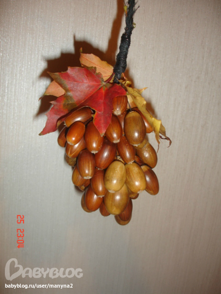Нарисовала, чтобы было более понятно)) Желудь, там где попка, прокалываем иголкой, продеваем нитку и завязываем узелок( чтобы зафиксировать). Ниточка должна быть длинной. Потом собираем из 5-6 желудей маленькую кисть и уже вместе всязываем в узел. Дальше берем ветку с гроздью рябины, ягоды удаляем и наматываем на каждую веточку нашы связки желудей, каждую промазываем клеем, чтобы нитка не распускалась. Всерху добавляем листья и их также обматываем нашими нитками, промазываем клеем, когда высохнет удаляем ненужные нитки и часть ветки.