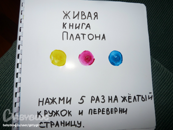 и вот мне захотелось сделать подобную книгу для платона своими руками! благо сканов и фото реальной книги предостаточно, остается только нарисовать разноцветные кружочки...и ждать чуда)))