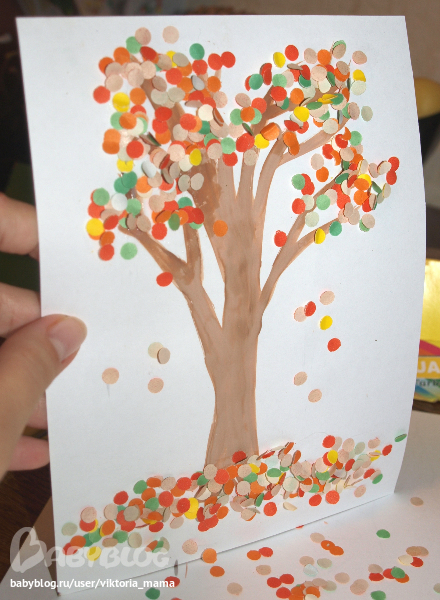 Мистер Умелец или Очумелые ручки (поделки, аппликации, интересные находки, идеи и задумки)Это дерево вы можете сделать вместе с ребенком, вы научите его пользоваться дыроколом, а также наглядно покажите ему, как падают листочки с дерева.