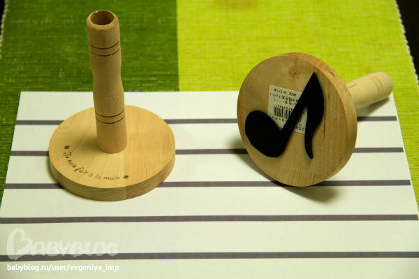 Этот штамп мне очень понравился. Купила деревянную подставку под клубки пряжи, из пористой самоклеящейся резины вырезала ноту и приклеила на основание. Очень удобно держать. А резина легко снимается, так что штампы многоразовые.