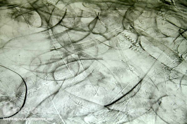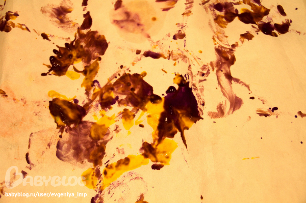 Потом я достала тонкий лист бумаги и Даня стал по нему бегать, заворачиваться в него, кататься по нему. А когда он был изрядно помят, я взяла уголь и просто стала делать разводы. Это магия какая-то. Меня заворожило превращение белой бумаги во что-то, действительно похожее на тишину. А потом Даня сел на мое творение и начал играть на рекоде. Естественно потом мы пошли отмываться в ванну.