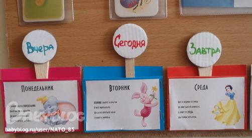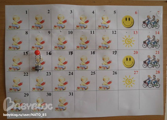 В правой верхней части доски календарь. Каждое утро у нас начинается с передвижения кнопки на новый день, вернее кнопку закрепляю я, так как втыкается она очень туго, а Лиза вешает брелок. Если я вдруг занята приготовлением завтрака и кнопка с брелком не передвинуты Лиза сразу возвещает о непорядке в доме))) И, каждый день (будни), Лиза с грустью смотрит на календарь и охает что пятница еще не скоро и мы опять одни, а папа на работе...