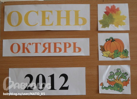 Итак, в верхнем левом углу у нас разместились названия сезона, месяца и года с картинками-ассоциациями