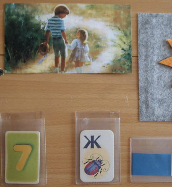 Слева картины с детьми (людьми, животными). Ежедневно меняющиеся карточки пока это цифры, счет, буква с ассоциативной картинкой, так как остальные карточки еще подбираю.