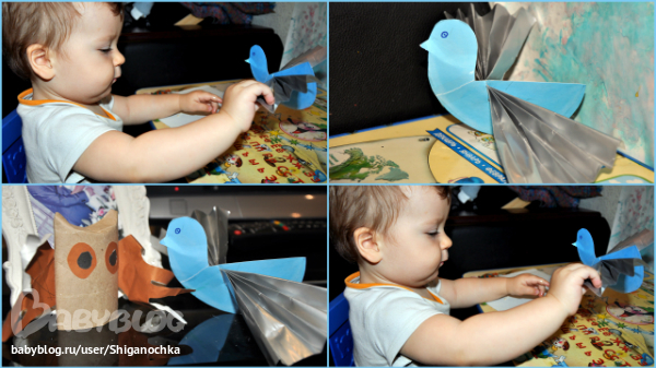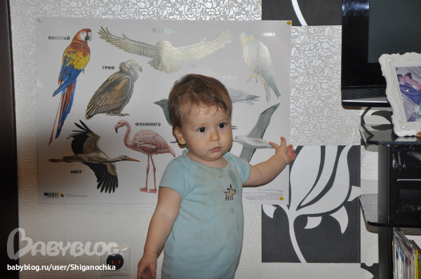 Показывает как делает дятел, воробей, сорока, сова, остальных птиц находит на плакате (покажу) и на карточках. В книжках когда видит птицу, я называю ее и он бежит к плакату или карточкам и показывает. Очень полюбился нам Альбатрос, мы про него такой замечатльный клип смотрели на youtube. Альбатрос у нас - "Бальба". Вообще про каждую птичку смотрели либо презентацию, либо клип. Обязтельно слушали голоса птиц. Сову теперь узнаем из тысячи))) Сова нам тоже очень запомнилась - и ухаем как сова, и спим тоже как сова. Как Воробушек прыгаем и кружимся из стихотворения А. Барто. Сороку показываем из русской народной потешки - сорока белобока, водим по ладошке. Дятла показываем из песни Железновых.