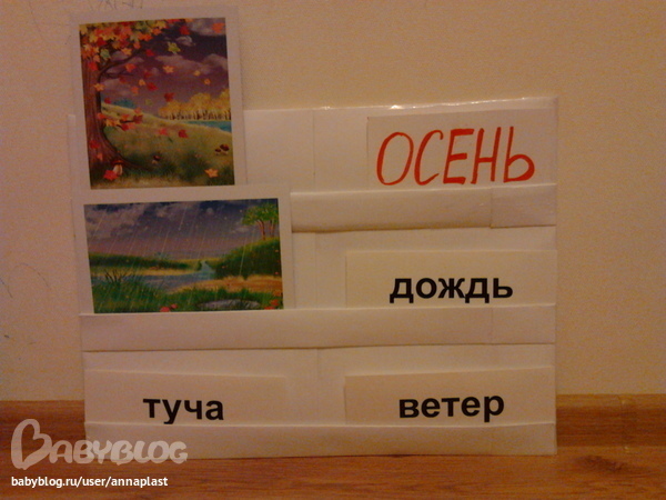 3. Книги и пособия. В определении погоды очень помогли слова из Умницы и карточки. Вот так выглядела наша информационная доска.