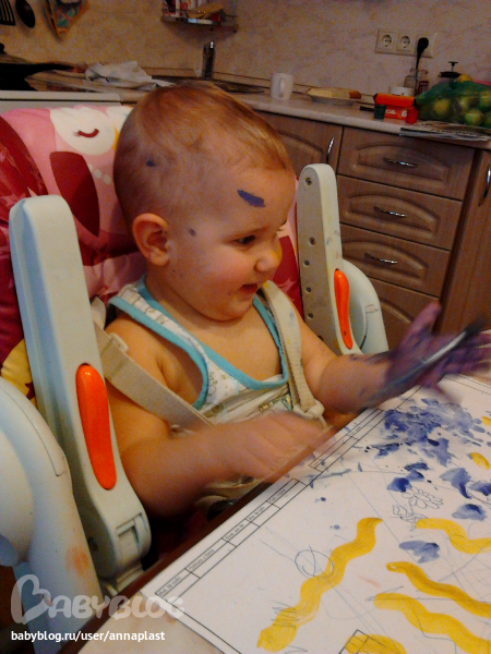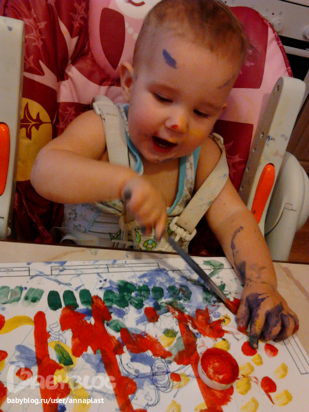Наделю назад пробовали рисовать ладошками. Маше очень понравилось. Сейчас только так и рисуем:))