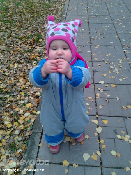 4. На улице. Ну вот тут раздолье полное. Собирали веточки, листочки, шишки, ходили по лужам, кормили уток, на себе чувствовали ветер и дождь. Маша любит гулять:)