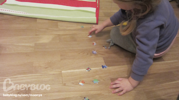 потом из паззликов мы сделали следы волка (я все думала, зачем нам пазлики мелкие из киндеров), так, куда они ведут...