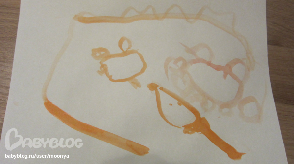 Сразу после просеивания - рисовали картину для мышат. Тут Алиса на свое усмотрения выразила впечатление от наших игр с мышами и лисой( которую я нарисовала, мы вообще всегда почти вместе на одном листе рисуем). Вот как она изобразила нору с несколькими выходами - большой круг и вокруг маленькие - выходы:)) Красное - ягодки, которые собирает мышь