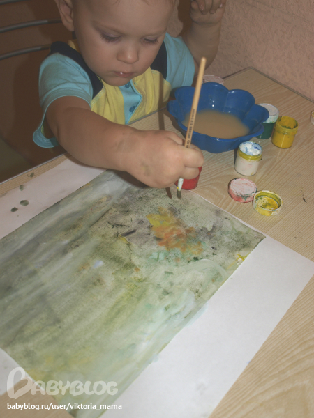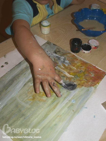 Мы тоже любим пальчиками. Рисовали ещё и "Золотую осень", но что-то у мамы не получилось поместить всё в один комментарий. Верхняя фотография куда-то исчезла