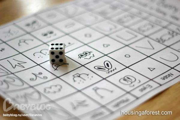 Сначала определитесь со щечками. Дети по очереди бросают кости, чтобы выяснить, кому какие щечки рисовать. Затем точно так же разыграйте голову, нос, глаза, рот, волосы и уши.