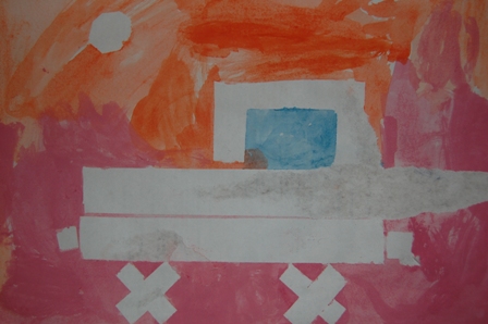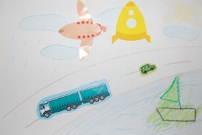 Чуть позже делали такое: клеим бумажный скотч, поверху красим красками и - вуаля - получилась машина