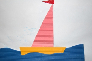 Сделали аппликацию кораблика: получилось отлично, но мама очень сильно помогала, тк все детали расплывались по сторонам