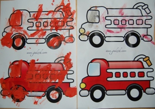 За неделю успели много интересного: раскрасили пожарную машину гуашью и акварелью
