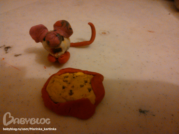 Я сделала ей рот и провела пластическую операцию - поставила ушки на место)Затем читали стих про сыр и тех, кто делает дырки в нем)