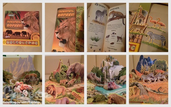 Книга, поразившая меня своим наполнением - панорамки, информация про животных, фигурки бумажных зверей и еще кнопки с озвучкой (кстати сказать, часть кнопок сразу не работала, но я не стала сдавать обратно в магазин - мне показалось это не столь важным). Покупала