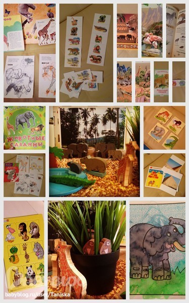 Дочка отлично запомнила жирафа, слона, носорога, бегемота, зебру, леопарда, антилопу, обезъян (и горилл среди них), крокодила, попугаев, тукана, питона, страуса, льва. Иногда изображает "рычание" льва. Показывает - где клюв у тукана. Смеется во весь голос над питоном. И даже показывает пирамиду Хеопса на картинках.