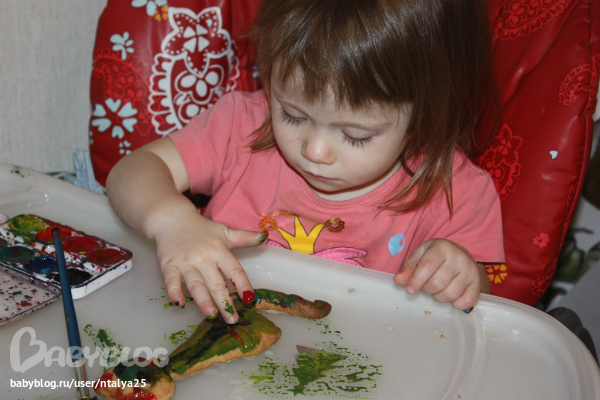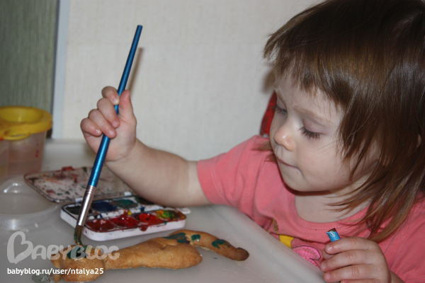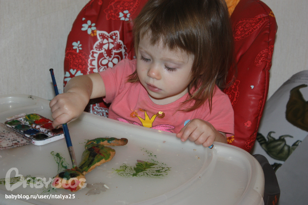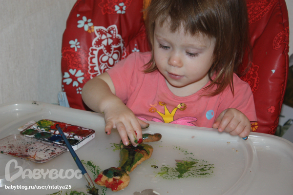 Запекли ее в духовке, ушли гулять и по возвращению ее раскрасили, вернее Настя.