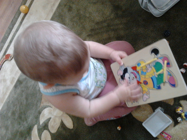 Пазл Маше понравился. Она сосредоточено доставала животных из рамки, пыталась немного собирать, узнавала - развлекались, как могли:) Пазл плох только одним, собранная картинка на весу не держится..