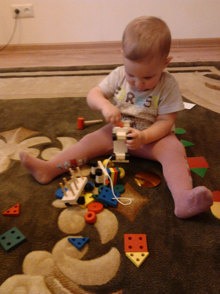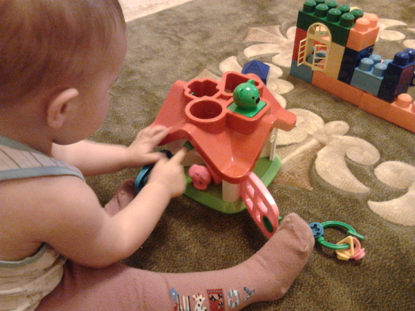 Домик-сортер с четырьмя разными вариантами закрывания дверей нами почти полностью изучен:) Ура!