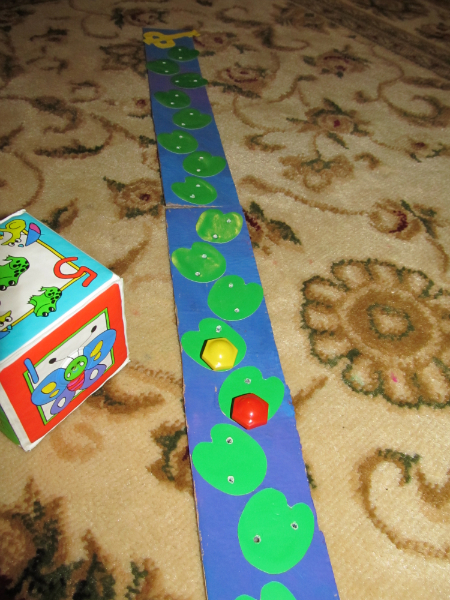 Играли в максимально упрощенный вариант игры-ходилки (на нранях кубика есть цифры):