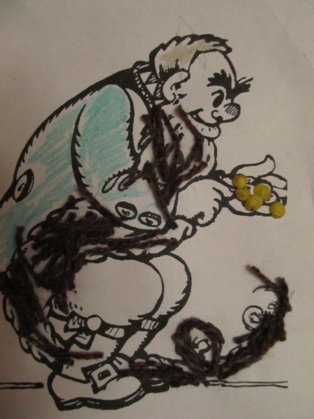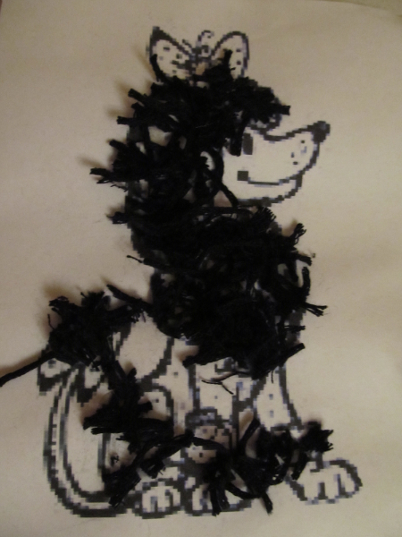 Делали аппликацию Артемон с помощью клея ПВА и черной пряжи:
