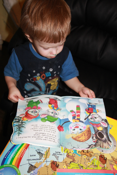 Я купила тоненькие книжечки на каждый день и по теме достаю новую! Сегодня мы читали про снеговика!