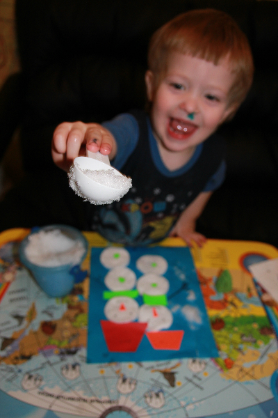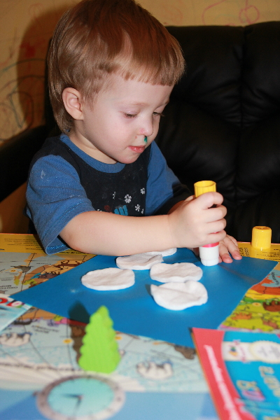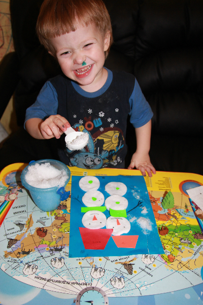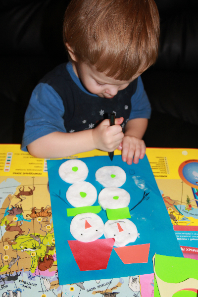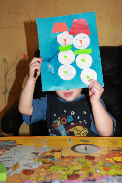 Даня налепил все сам.. я нарисовала снеговику руки , рот!