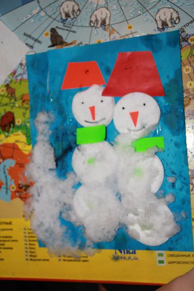 Задание от деда Мороза номер 2 - сделать два снеговичка! Апликация!